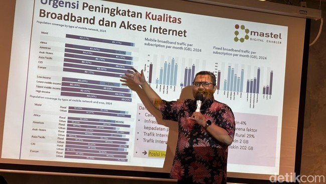 Ia kemudian mengacu pada data International Telecommunication Union (ITU) tahun 2020 bahwa penetrasi internet Indonesia belum menyentuh 5% dan hanya lebih baik dari Laos, Kamboja, dan Timor Leste. Sedangkan, berdasarkan data yang dikutip Komdigi, penetrasi internet fixed broadband di Laos saat ini sudah lebih baik dari Indonesia.