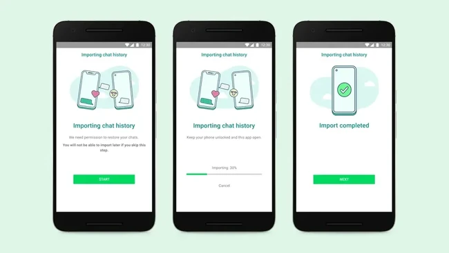 Perangkat baru kemudian akan meminta pengguna untuk memindai QR code menggunakan perangkat lama dan memindahkan riwayat WhatsApp. Untuk menyelesaikan proses transfer, pengguna tinggal login ke WhatsApp di perangkat baru dan mengimpor riwayat chat-nya.