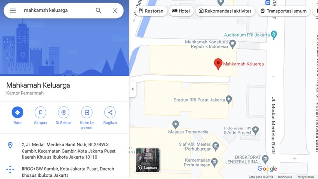 Jika membuka aplikasi Google Maps dan mencari Mahkamah Keluarga, Anda akan diarahkan ke Gedung MK. Sontak hal ini jadi obrolan netizen.