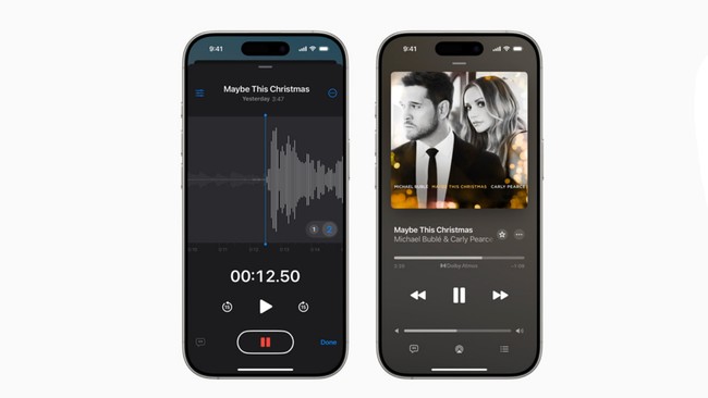 "Dan kini dengan Perekaman Berlapis, jika seorang seniman tiba-tiba mendapatkan inspirasi, ia tidak perlu langsung ke studio musik untuk menuangkan inspirasi tersebut. Apple memang dari dulu sudah dikenal menciptakan sesuatu yang ternyata jauh berguna dibanding yang kita kira - dan setelah memahaminya, kita akan sangat mengandalkannya," ujar Michael Bublé, penyanyi yang menggunakan Memo Suara di iPhone 16 Pro untuk merekam lagi Maybe This Christmas.