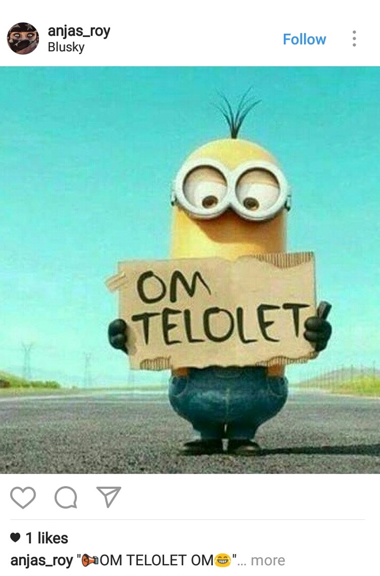 Yang ini juga lumayan lucu. Minion yang sedang mencari tumpangan diedit dengan menambahkan tulisan 'Om Telolet' pada karton yang dipegangnya. (Foto: Instagram)