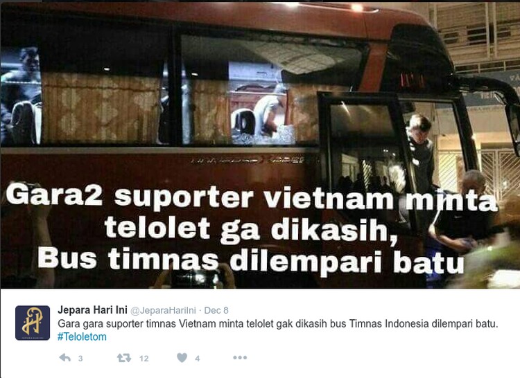 Misalnya meme yang satu ini, yang membuat lelucon tentang suporter Vietnam saat momen pertandingan AFF 2016 kemarin. (Foto: Twitter)