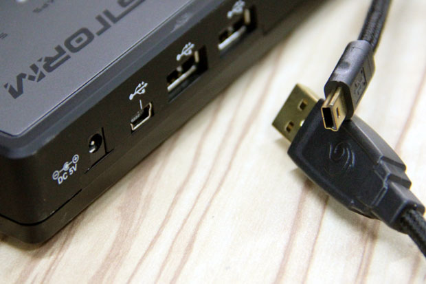 Kabel yang disertakan dalam paket penjualan juga tak kalah garang. Dibalut dengan warna hitam pekat serta kedua ujung interface USB berwarna emas. Cukup menarik. Selain itu keyboard ini juga memiliki dua port USB dan sebuah port tambahan untuk adapter.