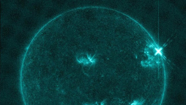 Sementara itu, NASA melalui Solar Dynamics Observatory memperlihatkan video ledakan suar matahari tersebut di bagian kanan atas. Sedangkan, Space Weather mengungkapkan suar matahari terbaru bersumber dari bintik matahari AR2838 yang baru terbentuk.
