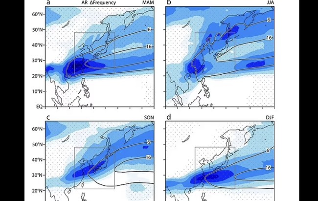 Mereka menemukan bahwa jika temperatur naik 7,2 derajat Celcius dalam skenario terburuk, maka sungai di langit itu akan menguat dan mengakibatkan hujan besar di seluruh Asia Timur. Simulasi menunjukkan area yang terdampak termasuk Jepang, Semenanjung Korea, Taiwan dan utara China.