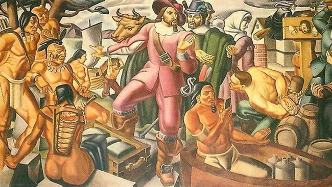 Lukisan berjudul Mr. Pynchon and the Settling of Springfield itu, menggambarkan penjajah dan para pendiri Springfield, Massachusetts, William Pynchon, selama masa perkembangan kota.