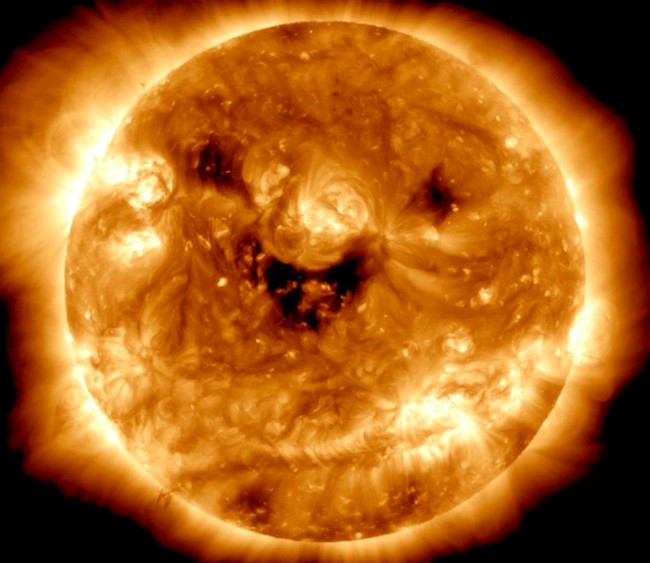 Pernah dengar ungkapan yang berbunyi "seolah Matahari tersenyum pada kita"? Ungkapan ini tampaknya pas untuk menggambarkan foto Matahari yang dipamerkan NASA kali ini.
