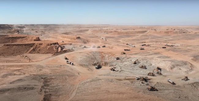 Sedikitnya ada 425 kendaraan ekskavasi berada di lokasi, seperti yang ditunjukkan oleh titik-titik merah yang terlihat pada gambar. Diperkirakan 1,7 juta meter kubik batu dan pasir digali di area ini.