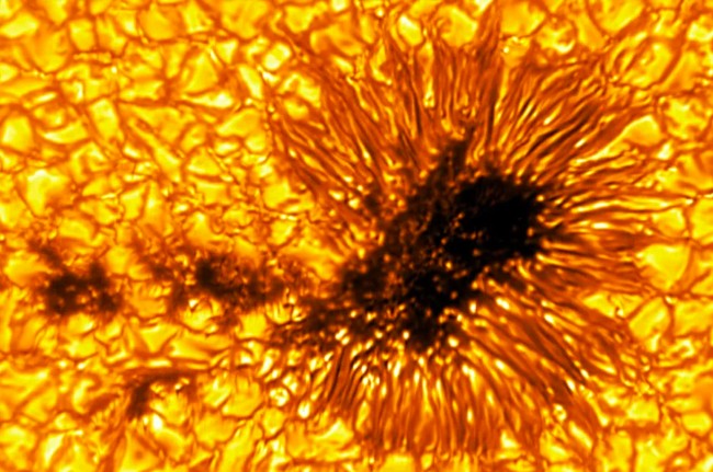 Di daerah yang lebih tenang, kita bisa melihat rincian fotosfer. Tampak plasma yang lebih panas naik dari bagian dalam Matahari, membuat bintik-bintik lebih terang, dan plasma yang lebih dingin akhirnya membentuk garis yang sedikit lebih gelap di antara setiap sel Matahari.