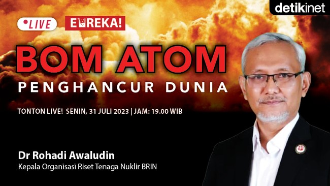 "Dulu, sebelumnya diyakini bahwasanya partikel terkecil itu atom yang tidak bisa dibagi lagi jadi materi. Ternyata diketahui atom itu di dalamnya ada kulit bagian luar, dan ada intinya. Nah inti atom itulah nuklir. Jadi nuklir itu adalah inti atom," kata Kepala Organisasi Riset Tenaga Nuklir BRIN Dr Rohadi Awaludin, dalam live streaming Eureka! 'Bom Atom Penghancur Dunia,' Senin (31/7/2023).