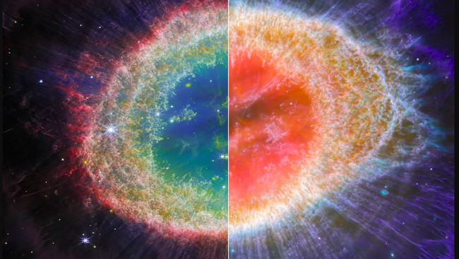 "Gambar menakjubkan dari MIRI James Webb ini mengungkapkan detail baru yang tidak dapat kami amati dengan NIRCam - terutama busur di luar cincin utama," kata Profesor Mike Barlow dari University College London, ilmuwan utama Proyek Nebula Cincin JWST.