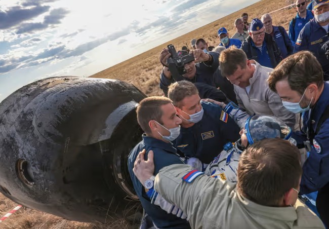 Dua minggu yang lalu, Soyuz pengganti sampai untuk menyelamatkan mereka dan Rabu minggu ini, mereka berhasil mendarat di daerah terpencil Kazakstan menggunakan kapsul Soyuz pengganti yang diluncurkan Februari tahun ini.