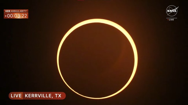 Di sini ilmuwan NASA menggunakan teleskop, untuk membagikan penglihatan gerhana Matahari cincin Api 2023 kepada orang-orang secara online. Di Kerrville, Texas, mereka menikmatinya selama lebih dari empat menit, yang mana ini menjadi salah satu periode gerhana terlama.