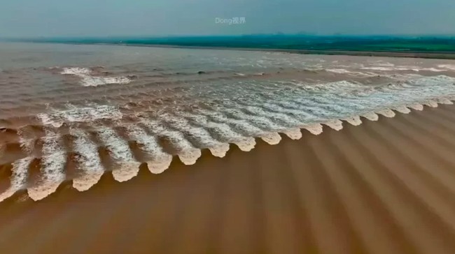 Sungai Qiantang di China terkenal dengan fenomena alam yang unik, yaitu air pasang yang berpola bergelombang. Fenomena ini dikenal dengan sebutan gelombang sisik ikan.