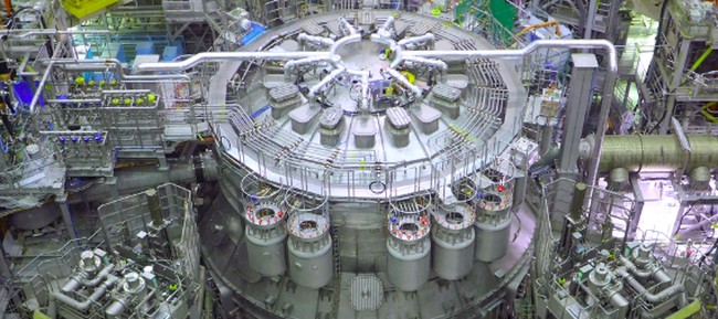 Mesin setinggi enam lantai itu, berada di hanggar di Naka, utara Tokyo, terdiri dari tempat tokamak berbentuk menyerupai donat yang berisi plasma berputar yang dipanaskan hingga 200 juta derajat Celcius.