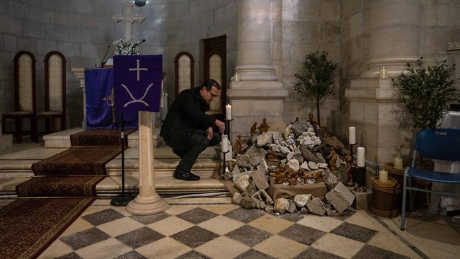 "Kami terpaku pada layar, melihat anak-anak ditarik dari bawah reruntuhan dari demi hari. Kami terpukul oleh gambaran-gambaran ini," ujar Pendeta Munther Isaac, seorang pendeta di Gereja Natal Evangelis Lutheran dikutip dari New York Times, Minggu (24/12/2023).