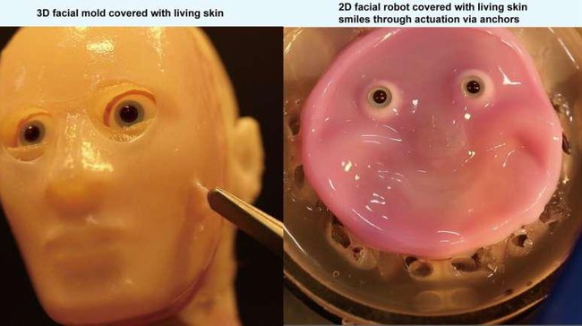Para ilmuwan Jepang telah menggunakan sel manusia untuk mengembangkan kulit hidup yang dapat ditempelkan pada permukaan wajah robot untuk meniru dan menampilkan ekspresi manusia yang realistis yakni senyuman, meskipun tampak menyeramkan.
