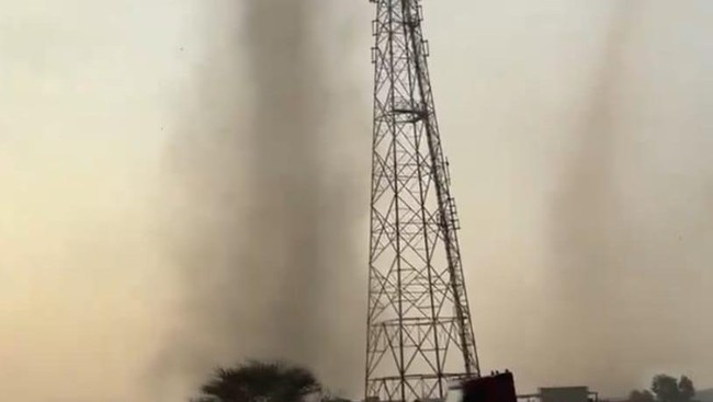 Dirilis oleh Storm Centre, akun media sosial populer yang melacak cuaca UEA, video tersebut memperlihatkan angin puyuh yang berputar tinggi ke langit, dengan pohon tumbang di pinggir jalan di wilayah Kadra di Negeri Emirat tersebut.