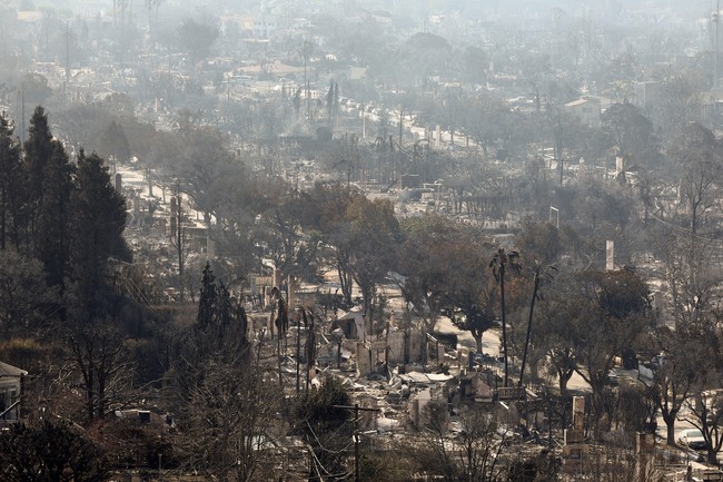 Kobaran api di Palisades, Eaton, dan Hurst masih terus membakar sebagian besar wilayah Los Angeles, California, Amerika Serikat. Jutaan orang akan terkena dampak asap yang dihasilkan oleh kebakaran kota ini.