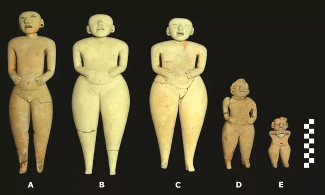 Arkeolog menemukan lima patung keramik, empat perempuan dan satu lelaki, di atas struktur piramida besar tahun 2022. Penemuan itu dilaporkan di jurnal Antiquity baru-baru ini, awalnya tampak sebagai bagian persembahan pemakaman yang mewah. Namun karena tak ditemukan jasad manusia, lokasi boneka di piramida tertinggi mengisyaratkan fungsinya untuk ritual.