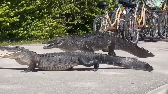 Kedua makhluk raksasa itu terlihat berkelahi pada tanggal 19 Maret di sepanjang trotoar di Taman Nasional Everglades di ujung paling selatan Florida. Rekaman di bawah ini diambil oleh Taylor Bonachea yang mengatakan kedua binatang bersisik itu tampaknya sedang berkelahi memperebutkan tempat berjemur.