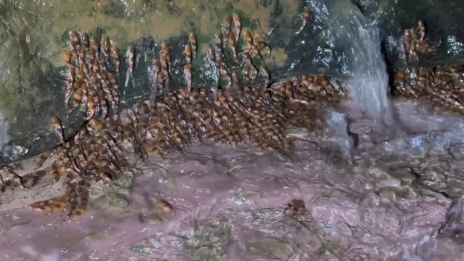 Tim mengamati ikan lele bergerak seperti ini di awal musim hujan pada November 2024. Dengan mengamati ikan-ikan tersebut, tim mengetahui bahwa pada siang hari hanya beberapa yang terlihat 'berbaring' di tempat teduh. Namun, mulai pukul 18.00 ikan-ikan tersebut mulai bergerak. Ribuan lele terlihat memanjat batu-batu horizontal maupun permukaan vertikal.