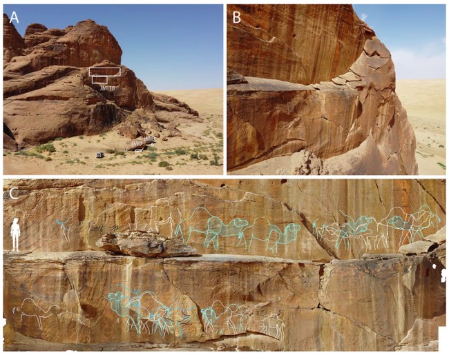 Gurun-gurun gersang di Arabia utara tampaknya bukan jenis iklim yang disukai manusia purba, tetapi temuan-temuan baru mengubah hipotesis tersebut. Para arkeolog telah menemukan ukiran unta, ibex, kijang, dan kuda seukuran manusia asli yang dipahat tinggi di lereng tebing gurun, serta peralatan, manik-manik, dan indikasi adanya perkemahan sementara.