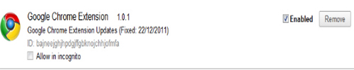 Sekali Anda menginstal script ini, maka satu script baru akan langsung ditambahkan pada browser dan langsung aktif. Pada Chrome ia akan menamakan dirinya 'Google Chrome Extention 1.0.1' (lihat gambar 5)