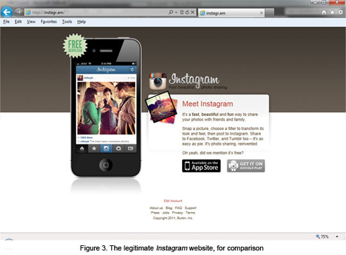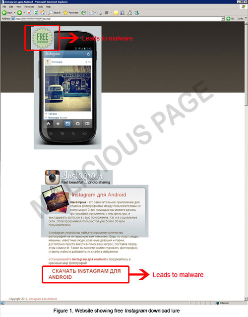 Jebakan ini tentu bukan main-main, sebab ketika user mendownloadnya maka program jahat (malware) akan masuk ke dalam ponsel. Tak hanya Instagram, seseorang bernama Jonathan Beltrand pun menemukan pemalsuan halaman web Angry Birds Space.