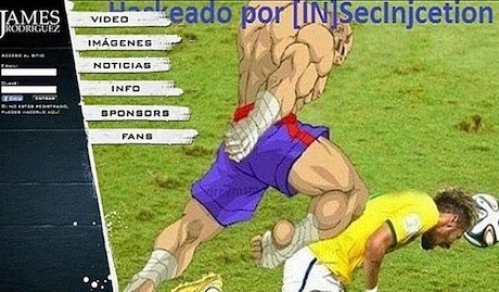 Di halaman depan situs Rodriguez, tampak Neymar mengerang kesakitan akibat diterjang oleh dengkul, yang digambar itu digantikan seperti karakter game Street Fighter Sagat.
