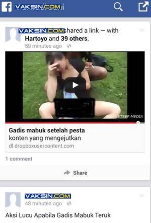 Gambar 1: Posting Facebook provokatif 'gadis mabuk setelah pesta' yang memancing korbannya melakukan klik.