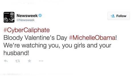 "#CyberCaliphate Bloody Valentine's Day #MichelleObama! We're watching you, you girls and your husband!" demikian kicauan ancaman CyberCaliphate tersebut.