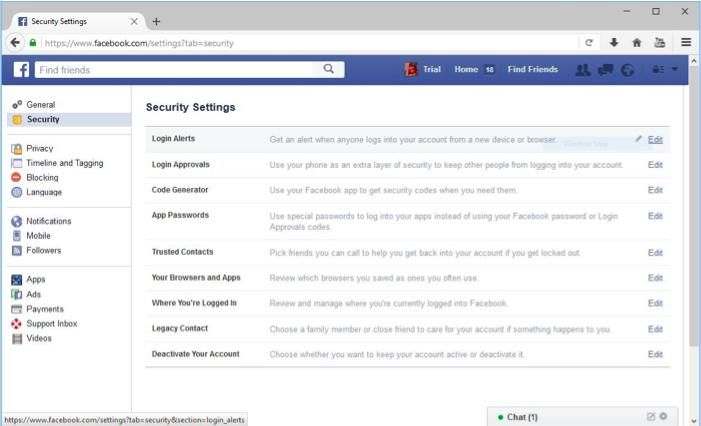 Facebook sendiri sejatinya telah menyediakan sejumlah pengamanan tambahan untuk akun Facebook Anda. Seperti fitur Login Alerts, Login Approvals, Code Generator, App Passwords, Trusted Contacts dan seabrek fitur tambahan lain yang bisa diakses dari https://www.facebook.com/settings?tab=security setelah Anda login.