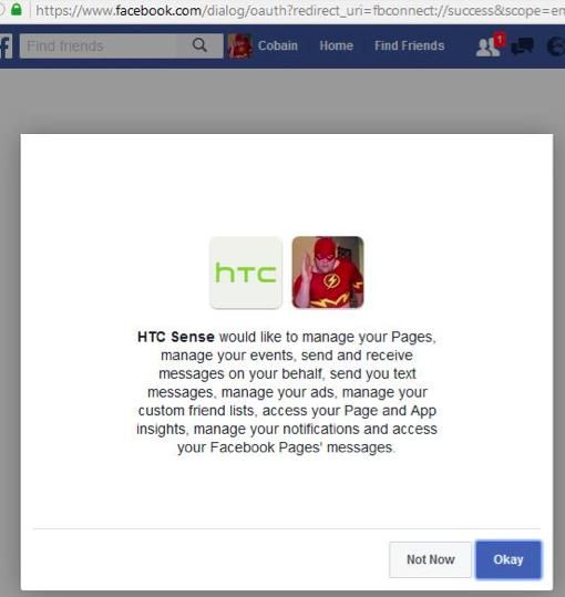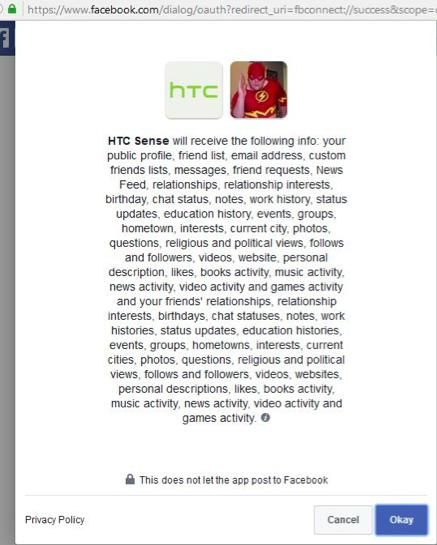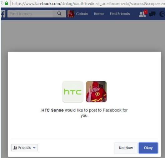 Gambar 3: Apps HTC Sense bisa melakukan posting di Facebook menggunakan akun Anda.