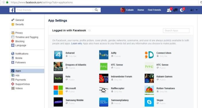 Gambar 13: Atur aplikasi Facebook |