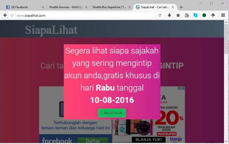 Gambar 5: Situs siapalihat.com menjanjikan pemilik akun Facebook mengetahui siapa yang mengintip akunnya. |