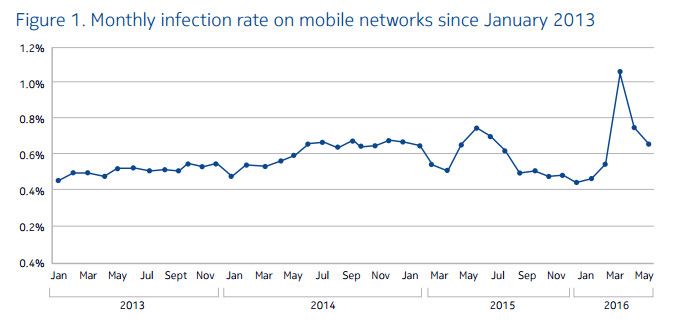 Dalam laporan Nokia disebutkan, jumlah infeksi malware di perangkat mobile meningkat sebesar 96% dalam pertengahan pertama tahun 2016 jika dibanding pada pertengahan kedua tahun 2015. Peningkatan tertinggi terjadi pada bulan April, di mana tiap 120 smartphone, 1 di antaranya sudah terinfeksi malware.