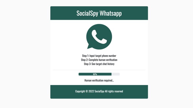 Dalam situsnya, SocialSpy menyebutkan pengguna perlu memasukkan nomor telepon targetnya, lengkap dengan kode negara. Lalu setelah itu pengguna harus menyelesaikan verifikasi untuk membuktikan dirinya bukan bot. Tahap ketiga atau terakhir, percakapan target disebut sudah bisa dilihat.