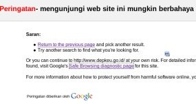 Namun ketika detikINET melakukan pengamatan pada Senin (16/6/2008), tanda peringatan dari Google tersebut kembali muncul ketika pengguna internet mencoba mencari situs Depkeu dari Google.