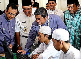 Keterangan foto: Menkominfo dan Presdir XL saatΒ menyerahkan donasi komputer ke Pesantren Darussalam (xl)Β Β