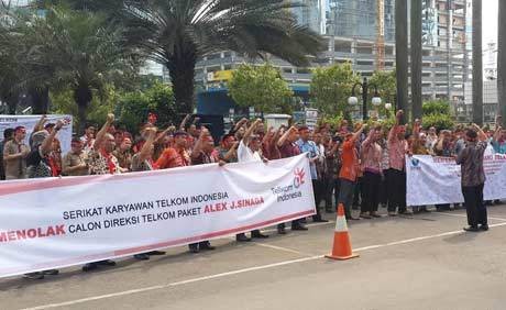 Suara miring datang dari Serikat Karyawan (Sekar) Telkom yang berorasi menolak AJS -- sapaan Alex J. Sinaga -- sebagai orang nomor satu di BUMN Telekomunikasi itu.