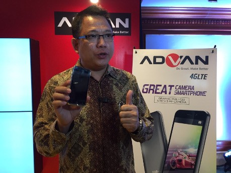 Tjandra Lianto, Marketing Director Advan, ponsel 4G yang dibundling dengan Indosat ini merupakan hasil perakitan dari pabriknya yang ada di Semarang.