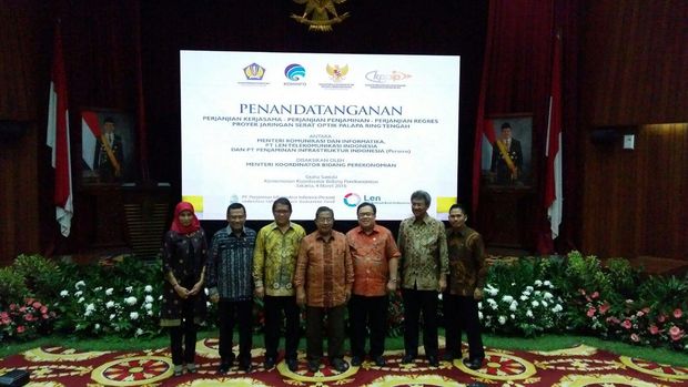 Setelah menandatangani Perjanjian Kerjasama untuk Proyek Palapa Ring Paket Barat beberapa hari yang lalu, mereka hari ini kembali mendatangani Perjanjian Kerjasama untuk Proyek Palapa Ring Paket Tengah dengan PT LEN Telekomunikasi Indonesia (konsorium Pandawa Lima) dengan nilai proyek Rp 1,38 triliun.
