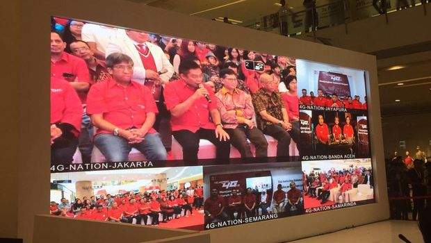 Video conference di tengah atrium mal Central Park saat peluncuran Telkomsel 4G Nation.