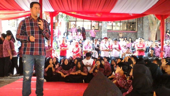 Di hadapan sekitar 300 siswa SMAN 3 Sukabumi, Telkomsel menghadirkan keseruan berbagi ilmu serta pengetahuan tentang dunia kreatif digital, dengan mengajak salah satu mentor yaitu Pandji Pragiwaksono sebagai pembicara.