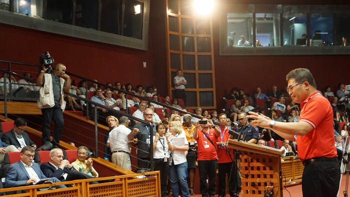 "Saya juga berterimakasih kepada Menkominfo Rudiantara yang sudah bela-belain menonton langsung dari kantor saya bersama para karyawan Telkom. Kami akan terus memberikan yang terbaik bagi negeri ini," ujarnya.