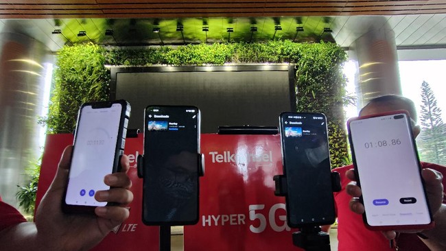 Hasilnya terlihat kecepatan internet 4G Telkomsel untuk download 134 Mbps dan upload 22,5 Mbps. Sedangkan, kecepatan internet 5G Telkomsel melesat hampir lima kali lipatnya menyentuh di angka 559 Mbps untuk download dan 71,5 Mbps untuk upload.
