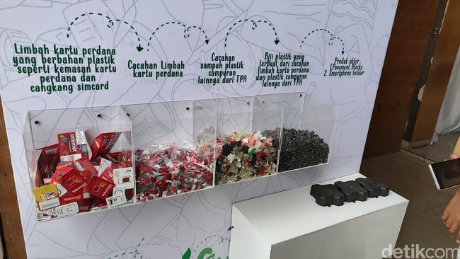Untuk mendaur ulang sampah plastik kartu SIM, Telkomsel menggandeng Plustik.id, sebuah startup yang fokus mengurangi sampah plastik rendah nilai. Oleh Plustik, cangkang kartu SIM dan kemasan plastiknya dicampur dengan sampah plastik rendah nilai lainnya untuk didaur ulang menjadi conblock dan phone holder.