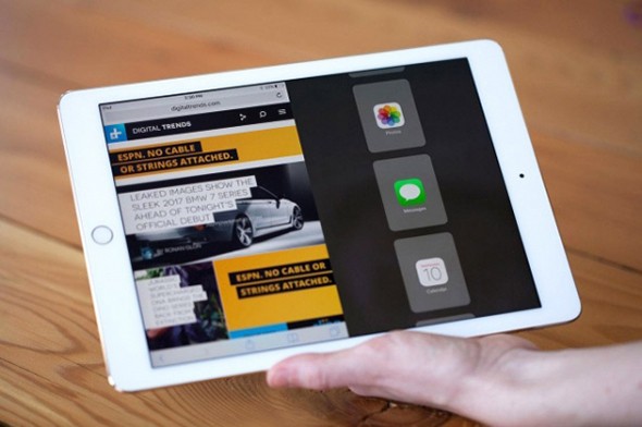 Fitur ini hanya tersedia di iPad Air 2, iPad Pro dan iPad Mini 4. Dengan Split View pengguna bisa membuka dua aplikasi sekaligus dan menampilkannya bersandingan sehingga akan memaksimalkan multitasking.