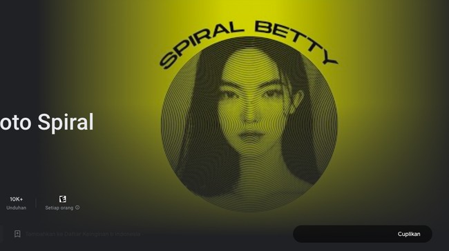 Salah satu tool hits yang viral Spiral Betty ini telah menjadi tren baru, untuk edit foto dengan efek spiral. Untuk bisa menggunakan fitur Spiral Betty, kamu nggak perlu download kok. Spiral Betty juga tersedia website atau situs secara online di link https://spiralbetty.com/. Spiral Betty juga bisa kamu download di Google Play Store.